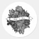 These round stickers make perfect envelope seals for sending out wedding invitations or an easy way to personalise wedding party favours. They features an illustration of a bouquet of roses in black and white in an antique engraving style. Across the front of the flowers is a white banner that is ready to be personalised with the monogram or initials of the bride and the groom. The graphic is set against a plain white background.