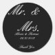 Black and White Round Mr. & Mrs. Wedding Stickers