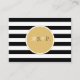 Black and white rsvp card with a gold circle in the middle for a black and white event.