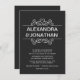 Vintage Chalkboard Style Wedding Invitations. Beautiful curly swirls with deco style heart on charcoal black background sets a refined tone for your elegant affair with a sense of romantic southern antebellum charm. Just add the bride and groom names and wedding info. Modern retro formal typography makes it perfect for a traditional church and civil unions or rustic country estate weddings, with a trendy touch of sophisticated flair for contemporary urban couples. Easy to use template can be modified for formal or semi-formal weddings. Click Customise It to change background colour, or the type and size of fonts. Shown on small 4.5 x 6.25 invitation cards - other sizes and styles available. Please contact us for help with customisation if you need additional room for your wedding details.