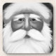 Close-up digital painting of a white old man with fair skin with a white beard and mustache, wearing a Santa Claus hat, black eyes, in black and white.