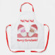 Two Santas, one black and one white, in pointillism, are printed on custom aprons. The text, Ho! Ho! Ho!, is printed at the top. The text, Merry Christmas, is printed at the bottom. The letters are printed in red. Both the text lines can be customised with your own greeting. Fun choice for mixed race families. Thank you for shopping at CherylsArt on Zazzle.