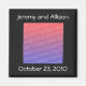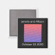 Wide black border, with a template placeholder for the bride's and groom's photo, along with a place for their names and wedding date, in white, on a magnet. Customise with your wedding details on an easy to use template. If you need help, just contact me.