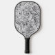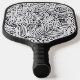 Pickleball Paddle with Black And White Scratch Art artwork design image by TheFabricSeal | Zazzle is a bohemian, whimsical and wonky black and white scratchboard style artwork design created with scratch art and mandala dot art techniques making many lines and shapes with some flowers and stars into the busy and great looking art image. Cute pickleball paddles, Cool pickleball paddles, Fun pickleball paddles, Funny pickleball paddles, Cartoon pickleball paddle, I love pickleball paddles.