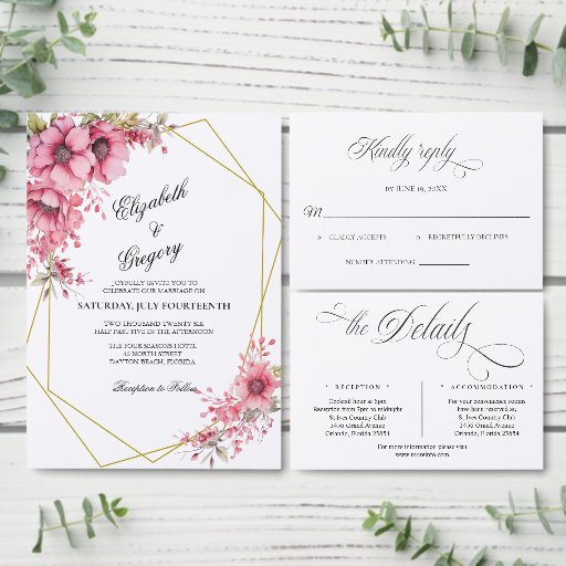 Pink Floral Wedding Invitation SuiteDesigned by Phyllis Waugh