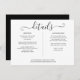 An elegant black and white wedding details information enclosure card personalised with your special details set in stylish typography and your names and wedding date on the reverse. Designed by Thisisnotme©
