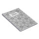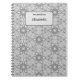 Black and White unique monochrome two coloured, intricate pattern with customisable name on front label on notebook.