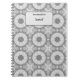 Black and White unique monochrome two coloured, intricate pattern with customisable name on front label on notebook.