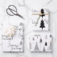 Beautiful and elegant black and white Season's Greetings wrapping paper set is perfect for those who like a simple and minimalist aesthetic. The pine trees have a tiny gold star. So pretty with the hand written script typography.