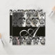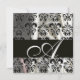 BLACK AND WHITE SILK DAMASK CLOTH MONOGRAM , white Invitation