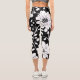 Black and White Simple Flower Seamless Pattern Capri Leggings