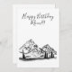 This is a Birthday Greeting card featuring a black and white sketched mountain and valley with a cabin and trees surrounding it. I love to draw sketches especially of mountains! This one gives the feeling of serenity and a quietness that is sought for in the busy lives of society. Your loved one will instantly appreciate the simplicity on the cover. Everyone loves receiving a Birthday wish!