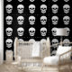 A repeating pattern of white skulls on a black background bringing an eerie Halloween look to any space. Ideal for accent walls, party backdrops or creative DIY projects where a simple gothic style stands out.