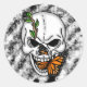Black and White Skull with Monarch Butterfly Classic Round Sticker