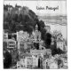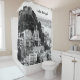Beautiful Black and White Skyline of Lisbon, Portugal shower curtain featuring St. George’s castle and the old world buildings and the River Tagus in the background.
