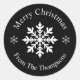 Black And White Snowflake Merry Christmas Modern Classic Round Sticker
