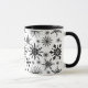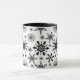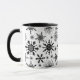 This is a beautiful mug with a snowflake pattern in black on a white background. Enjoy your warm drinks in this festive mug.