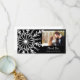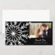 Customise the festive Black and White Snowflake Winter Wedding Thank You Photo Card with your own personal message of thanks, gratitude, appreciation and your picture. Suitable to use for gifts received after your classy December, January or February winter wonderland theme bridal shower or marriage theme. This elegant custom wintery thank you photocard features an intricate white snowflake design on a black background.