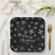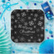 Black and White Snowflakes Christmas Party paper plates with a cute whimsical fun party invitation for a festive Holiday party.