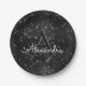 Black and White Faux Shimmer and Sparkle Elegant Birthday or Bachelorette Party Plates. These Black and White Birthday Party Plates can be customised to include your initial and first name.