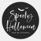 Black and White Spooky Halloween Brush Lettering Classic Round Sticker