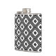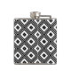 This hip flask features a contemporary retro abstract pattern of nested black and white squares.