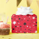 black and white stars on red wrapping paper