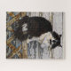 Black and White Stray Cat on Wood Lattice Fence Jigsaw Puzzle