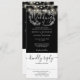 An all-in-one wedding invitation featuring pretty string lights and elegant typography on a black background. The invitation includes an RSVP card that can be cut off and guest information details. Designed by Thisisnotme©