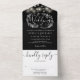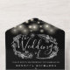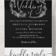 All in one wedding invitation featuring pretty string lights, hand-drawn floral garland and chic typography on a black background. The invitation includes a perforated RSVP card that can be individually addressed or left blank for you to handwrite your guest's address details. Designed by Thisisnotme©