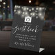 Black And White String Lights Photo Guest Book Pedestal Sign