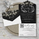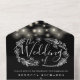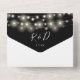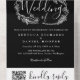 All in one wedding invitation featuring pretty string lights, hand-drawn floral garland and chic typography on a black background. The invitation includes a perforated RSVP card with your wedding website QR code and details. Designed by Thisisnotme©