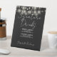 This black and white string lights elegant script signature drinks sign can be personalised with your information in chic typography. Designed by Thisisnotme©