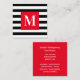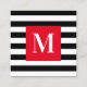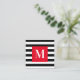 FRONT - Black and white stripe pattern with a customisable bright red single letter monogram. Customise the background colour of the pattern image or the square shape colour. White stripes. Striped pattern.