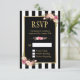 Black and White Striped Flowers Gold Frame RSVP Card.