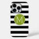 Black and White Striped Pattern Green Monogram Case-Mate iPhone Case