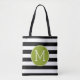 Black and White Striped Pattern Green Monogram Tote Bag