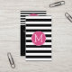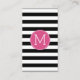 Black and White Striped Pattern Hot Pink Monogram Business Card