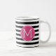 Black and White Striped Pattern Hot Pink Monogram Coffee Mug