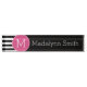 Black and White Striped Pattern Hot Pink Monogram Nameplate