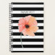 Stylish daily / monthly planner done in a black and white horizontal striped pattern. Graphics of a watercolor painted coral pink poppy, decorates the front. Personalise the text to read what you want.