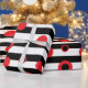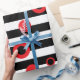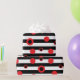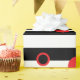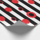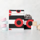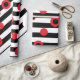 Modern contrast minimalist pattern with black-and-white stripes and red circles looks stylish and showy.