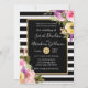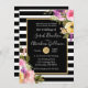 Black and White Stripes Flowers Roses Wedding Invitation