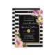 This stunning and striking wedding invitation features bold black and white stripes with a gold trim and pink purple yellow flowers. The pink purple and yellow roses in spring colours really pop out and sing beautifully on this gorgeous wedding invitation.