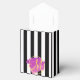 Make your best friends bridal party elegant yet a day to remember with this chic favour box. Striped black and white background with watercolor pink brush stroke and gold circle border coupled with customised monogram in elegant font.
