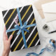 Designed to coordinated with our Black and Gold New Year’s Collection, this gold and white striped wrapping paper on black background is perfect for wrapping those New Year’s Gifts!