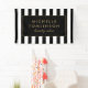 Coordinates with the Black and White Stripes Salon III Business Card Template and office supplies by 1201AM. Your name or business name is elegantly displayed over a black and white striped background for a very chic and stylish aesthetic. This customised banner is great to use for signage, trade shows, booth displays and more. © 1201AM CREATIVE
