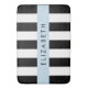 Black and White Stripes, Striped, Lines, Your Name Bath Mat