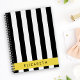Black and White Stripes, Striped, Lines, Your Name Notebook