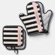 Black and White Stripes, Striped, Lines, Your Name Oven Mitt & Pot Holder Set